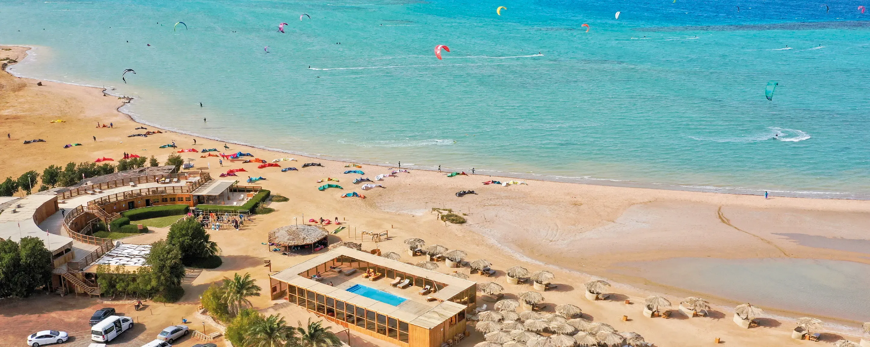 This superb spot to kite in El Gouna has professional instructors and plenty of gear available to rent. The sizeable shallow lagoon is more than 2 km2 and offers excellent conditions for kitesurfing in El Gouna. The beach destination also has a swimming pool, beach bar and restaurant, and kids can enjoy the shaded playground area.